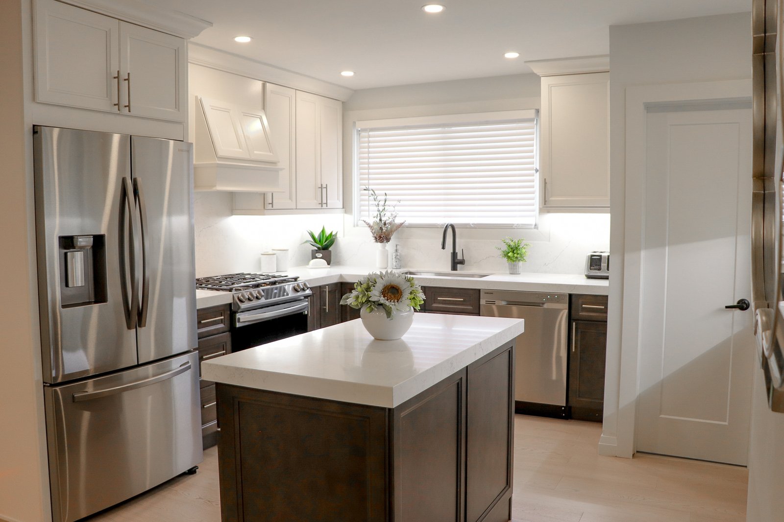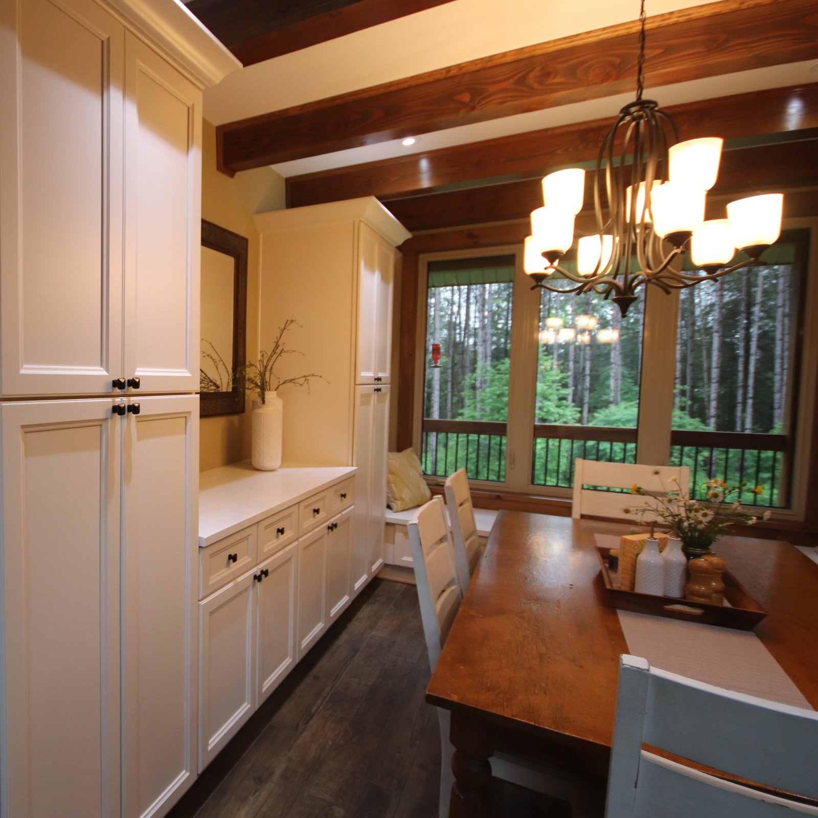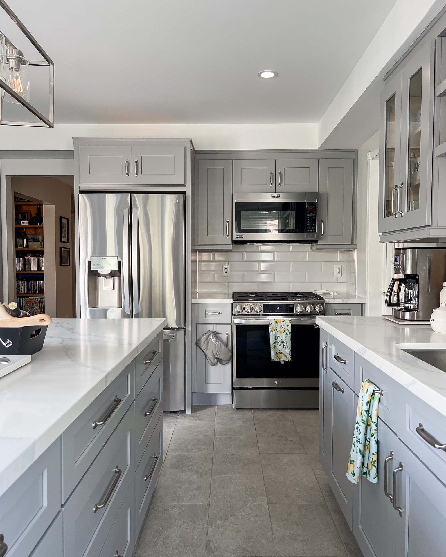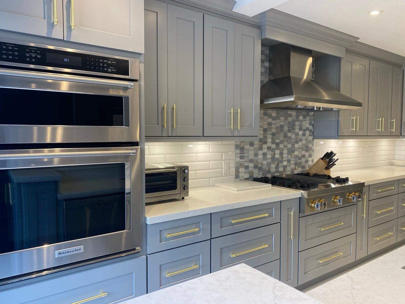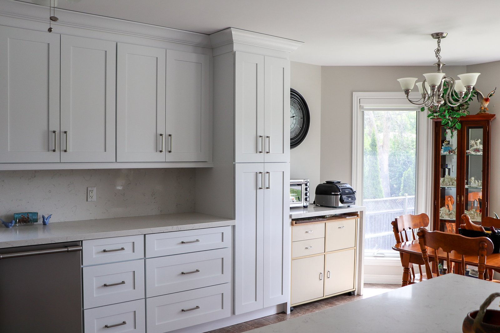 We bring samples with us. You can see and feel the actual cabinet doors, finishes, and hardware in your own kitchen lighting — not under showroom fluorescents.